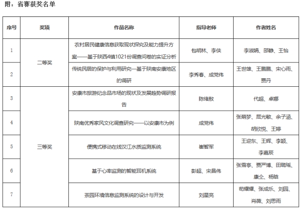 近日,由团省委、省委教育工委、省科协、省社会科学院、省学联共同主办,陕西师范大学承办的第十三届“挑战杯”陕汽集团陕西省大学生课外学术科技作品竞赛闭幕式暨颁奖仪式在陕西师范大学终南音乐厅举行。十大信誉网赌共有7件作品获奖,其中二等奖2项、三等奖5项。