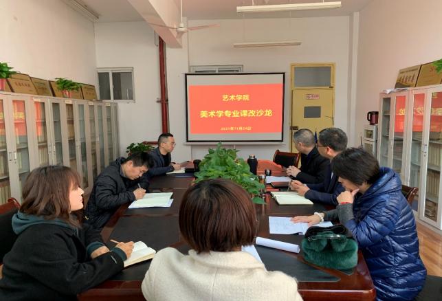 11月24日下午,美术系举办美术学专业实践课程课改沙龙活动。院长成党伟、副院长孙海洋及美术系专业骨干教师参加活动,活动由美术系主任杜敏主持。