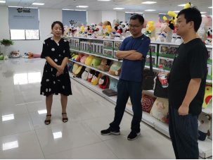 7月31日上午,调研团队在公司工作人员的讲解下,参观了该公司综合服务大厅毛绒玩具展厅、针工车间、机工车间、手工和包装区、公司办公区等各大业务板块,对于该公司发展总体情况进行了全面的调研。