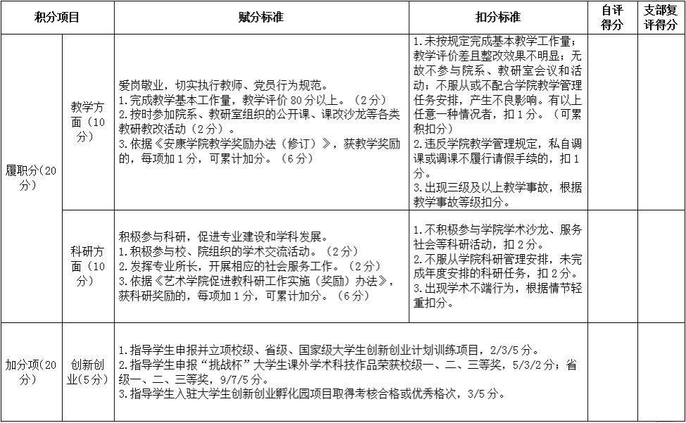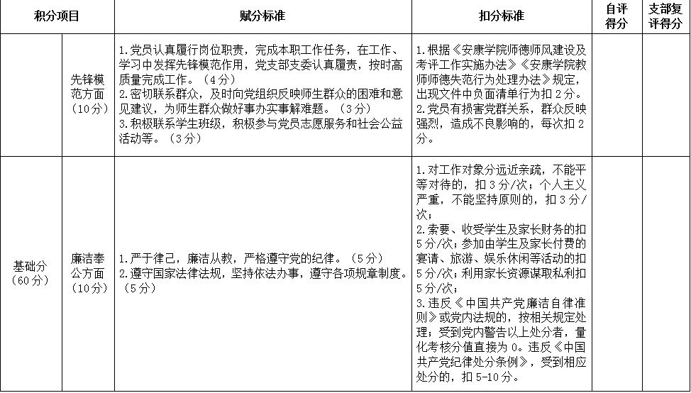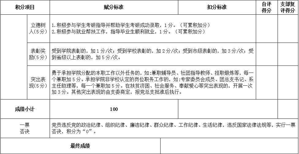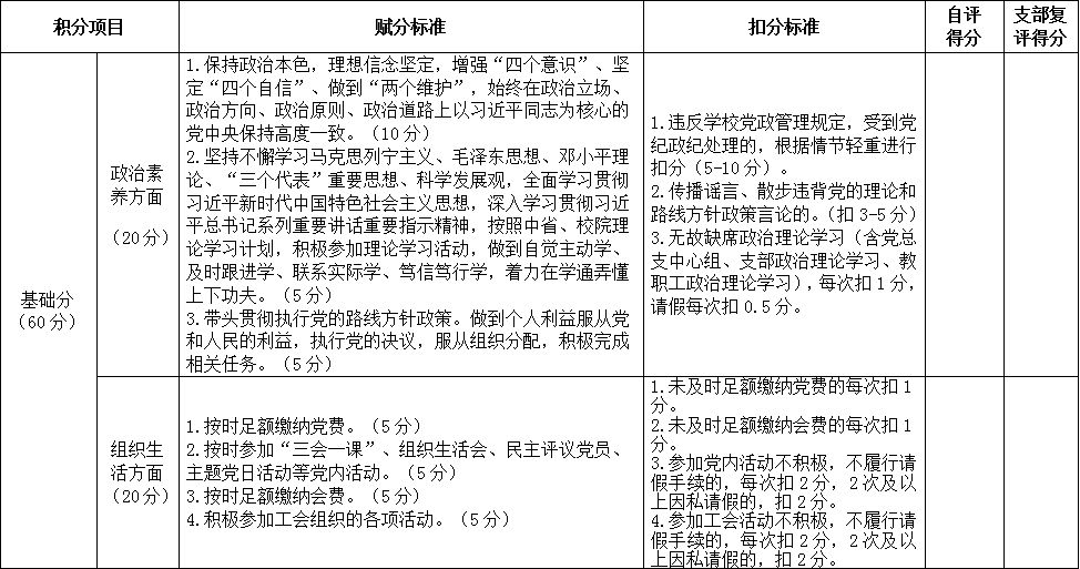 澳门十大信誉网赌大全教工党支部党员积分表(试行)